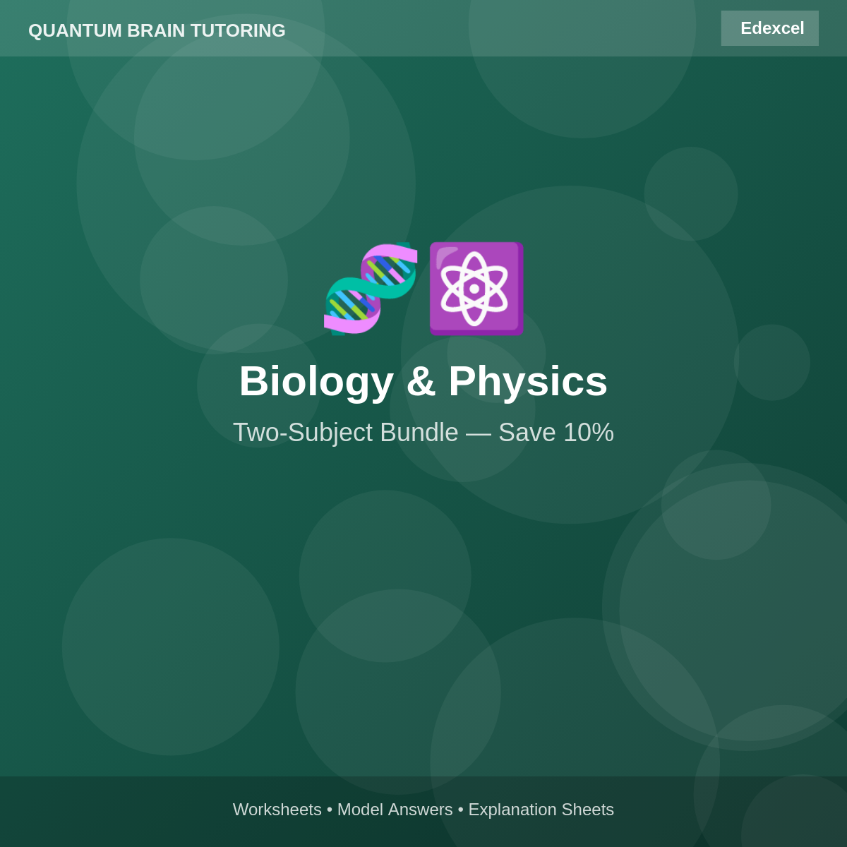 Save £5 with this two-subject bundle! Includes the complete A-Level Biology Edexcel and A-Level Physics Edexcel packs. Contains AS and A2 worksheets, detailed answer sheets with mark schemes, and step-by-step explanation guides for both subjects. Perfect for students studying both Biology and Physics at Edexcel.