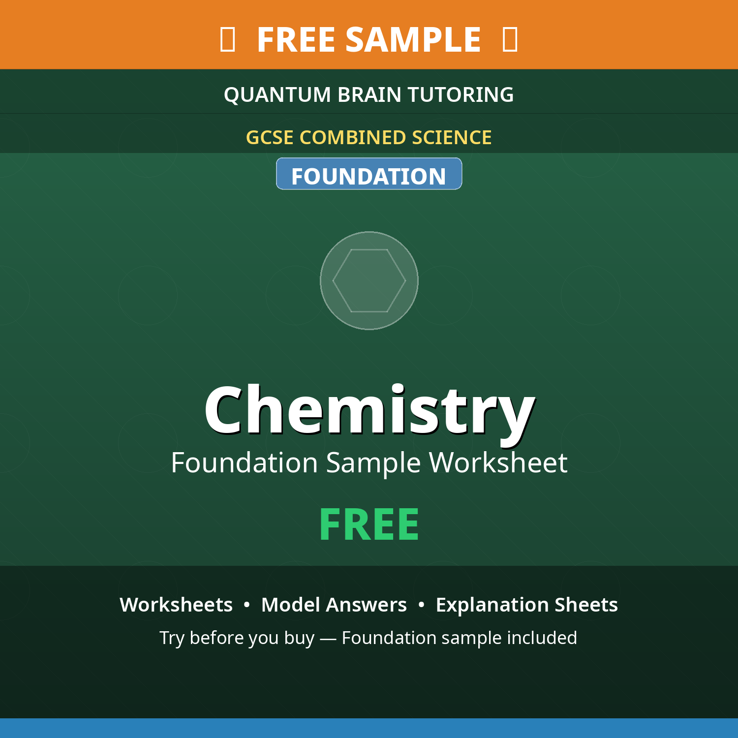 Free sample of GCSE Combined Foundation Chemistry resources. Includes sample worksheets, model answers, and explanation sheets with embedded diagrams. Foundation tier content designed for students targeting grades 1-5.