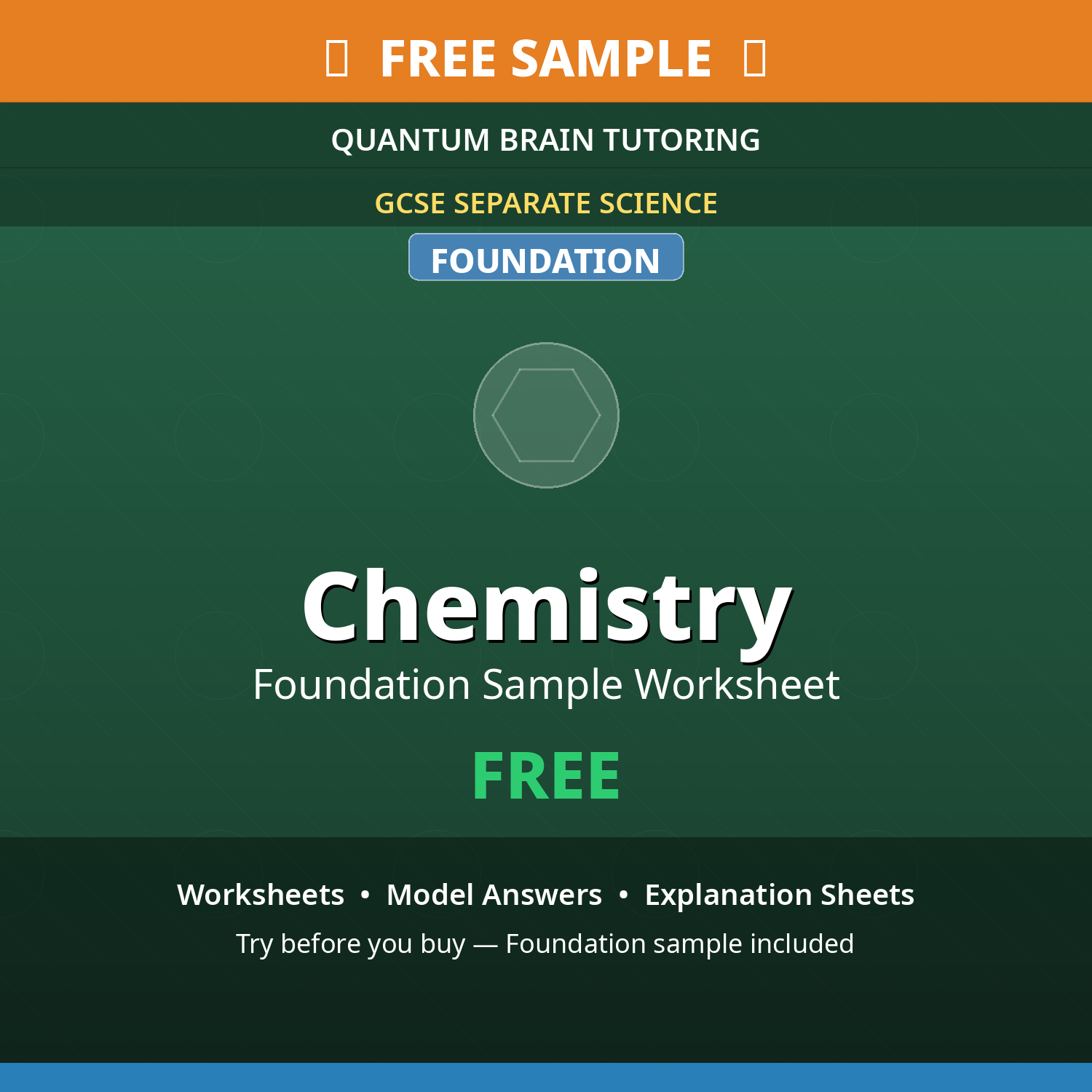 Free sample of GCSE Foundation Chemistry resources. Includes sample worksheets, model answers, and explanation sheets with embedded diagrams. Foundation tier content designed for students targeting grades 1-5.