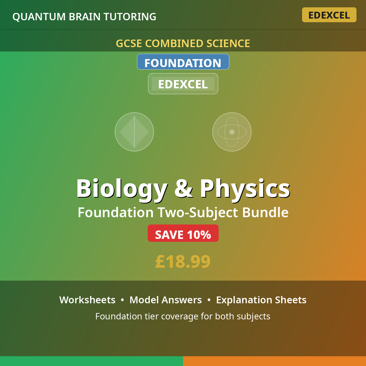 Double bundle of GCSE Combined Foundation Biology and Physics resources for Edexcel exam board. Foundation tier content designed for students targeting grades 1-5.