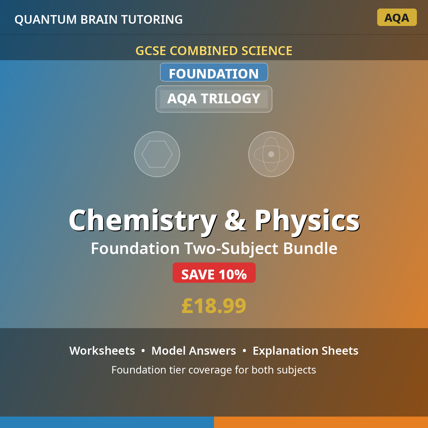 Double bundle of GCSE Combined Foundation Physics and Chemistry resources for AQA Trilogy exam board. Foundation tier content designed for students targeting grades 1-5.